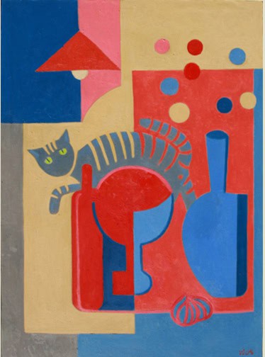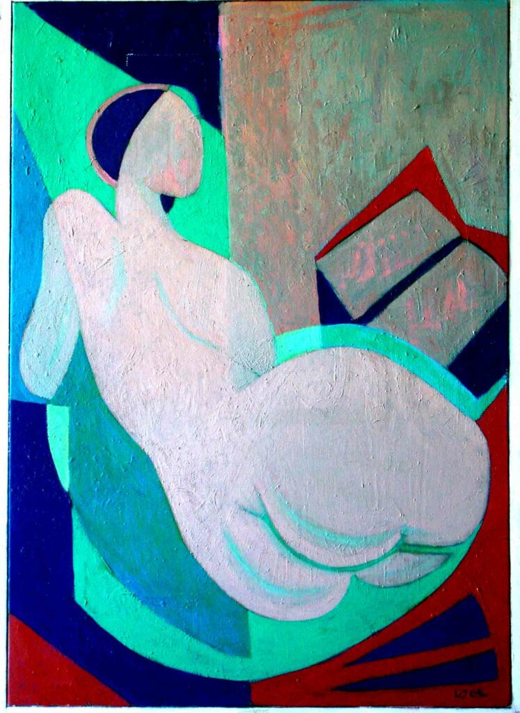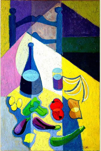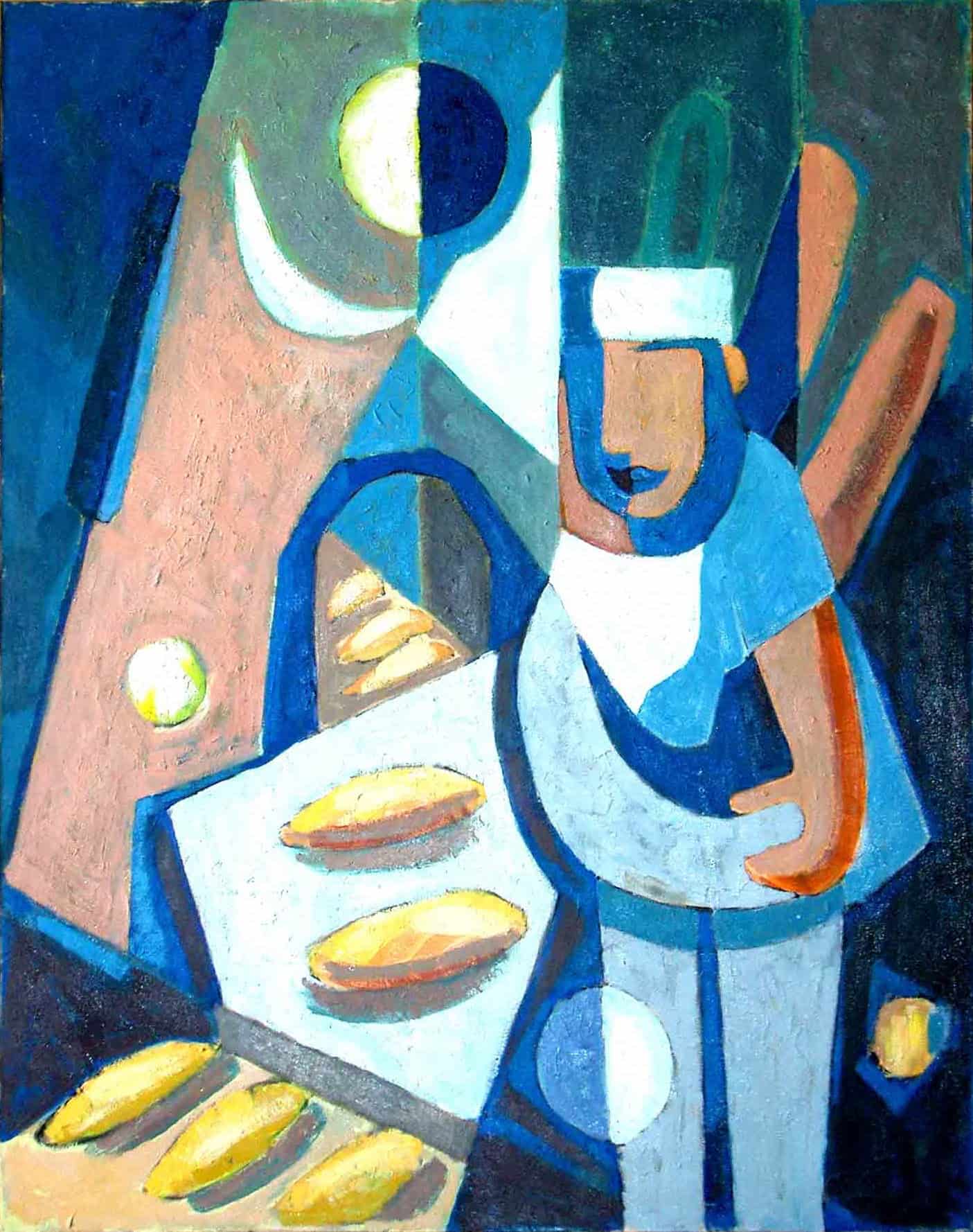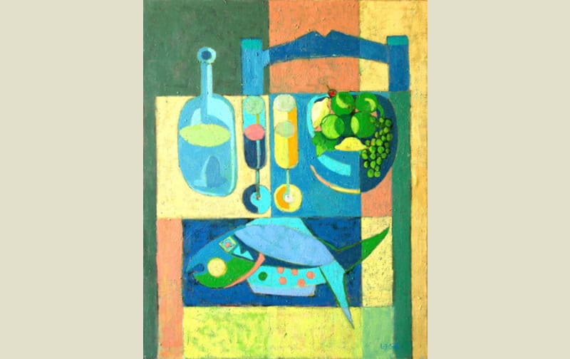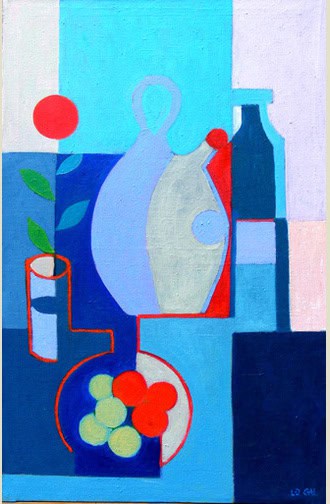 Dans ses toiles l’objet garde son essence Et s’intègre dans un ensemble dont on ne peut dissocier le plus petit élément. Proche parfois de l’Art non figuratif elles restent sur le plan et le narratif n’y a pas sa place. Le sujet est le support, Mais il est esclave de la pensée qui le plie aux lois internes de la composition. Ses larges à-plats, en pleine pâte, légèrement modulés par endroit, Couvrent sa surface en formes équilibrées exemptes de décoration. Le sujet est allusif et guide la réflexion du spectateur. Par la richesse intimiste de ses demi-teintes ou par l’éclatement des bleus de l’or et du sang, Elles traduisent la paix, la sérénité, rarement l’angoisse. Véritables hymnes à la vie, nous en gardons la vision comme élément de référence.