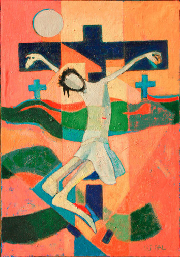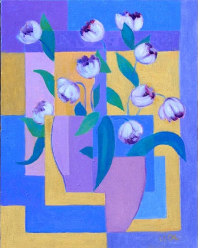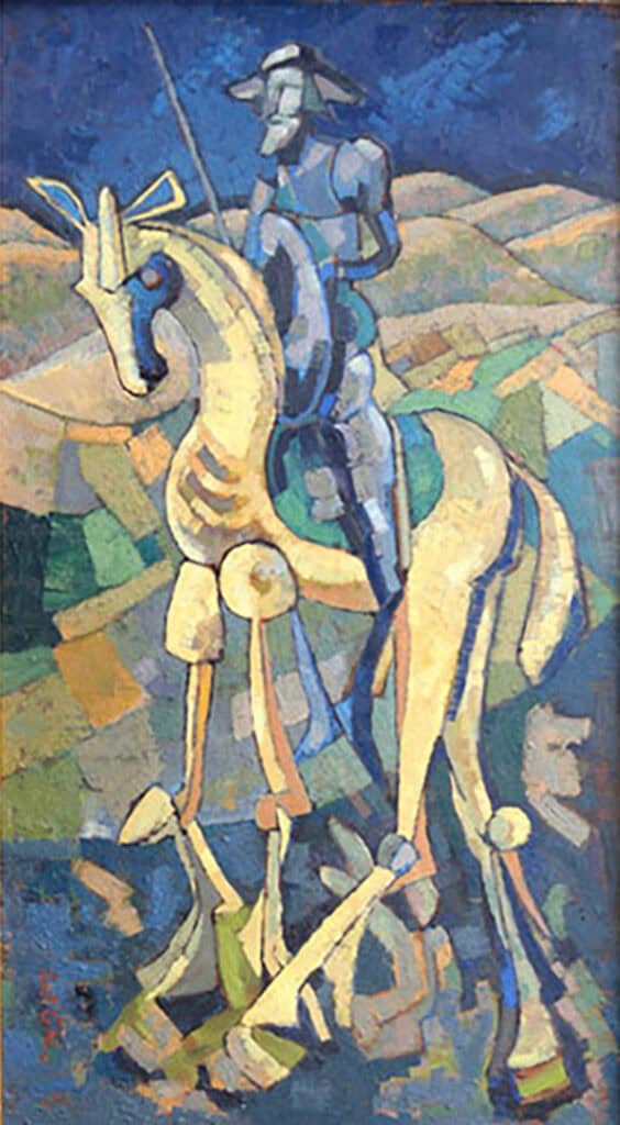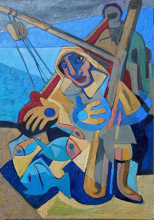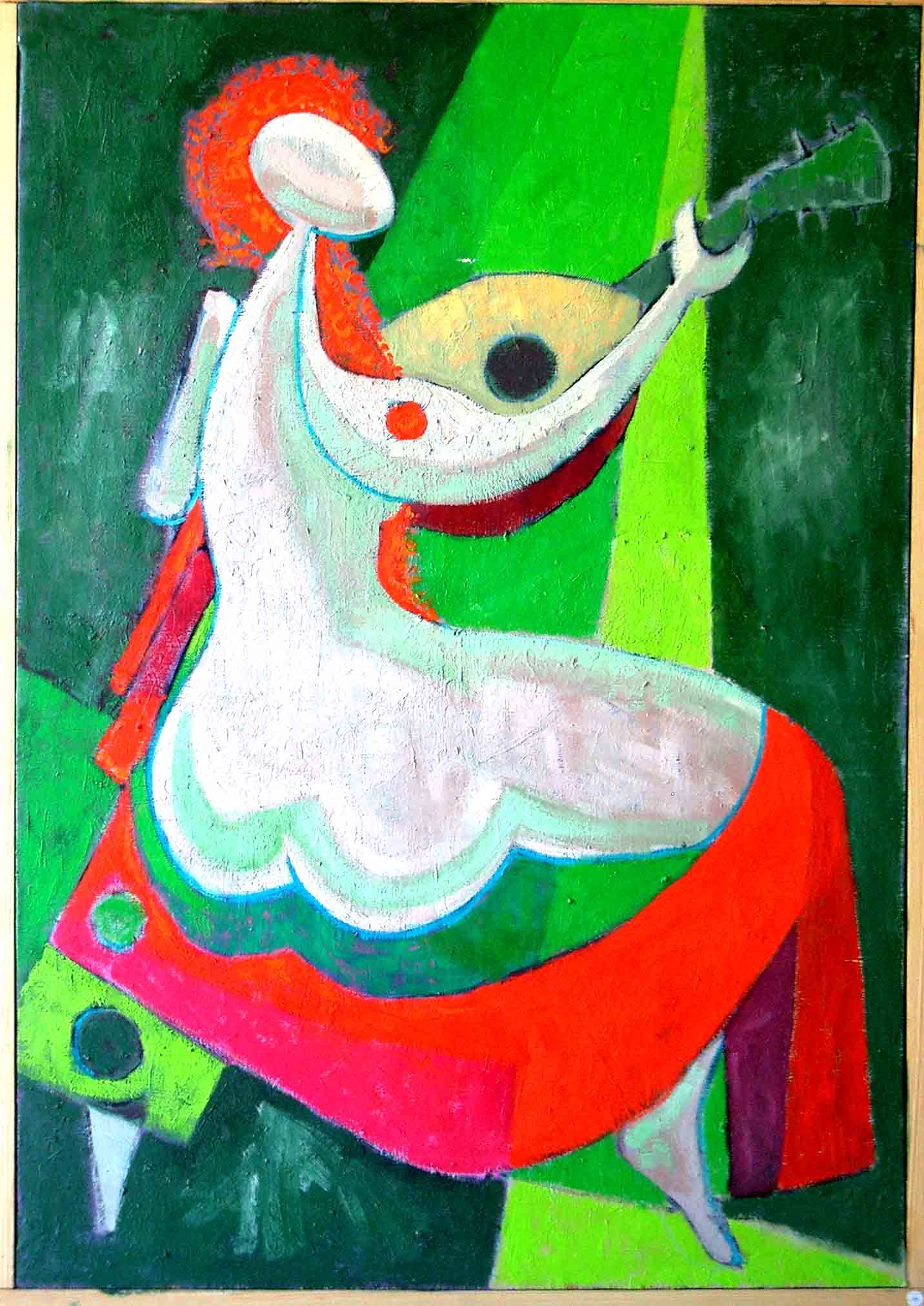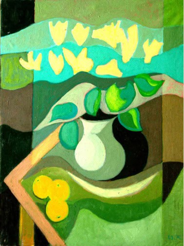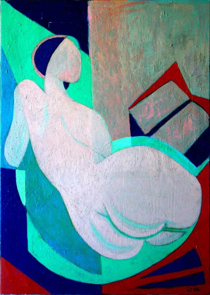 Dans ses toiles l’objet garde son essence Et s’intègre dans un ensemble dont on ne peut dissocier le plus petit élément. Proche parfois de l’Art non figuratif elles restent sur le plan et le narratif n’y a pas sa place. Le sujet est le support, Mais il est esclave de la pensée qui le plie aux lois internes de la composition. Ses larges à-plats, en pleine pâte, légèrement modulés par endroit, Couvrent sa surface en formes équilibrées exemptes de décoration. Le sujet est allusif et guide la réflexion du spectateur. Par la richesse intimiste de ses demi-teintes ou par l’éclatement des bleus de l’or et du sang, Elles traduisent la paix, la sérénité, rarement l’angoisse. Véritables hymnes à la vie, nous en gardons la vision comme élément de référence.
