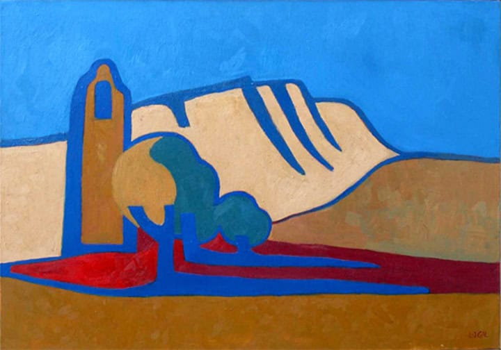 Dans ses toiles l’objet garde son essence Et s’intègre dans un ensemble dont on ne peut dissocier le plus petit élément. Proche parfois de l’Art non figuratif elles restent sur le plan et le narratif n’y a pas sa place. Le sujet est le support, Mais il est esclave de la pensée qui le plie aux lois internes de la composition. Ses larges à-plats, en pleine pâte, légèrement modulés par endroit, couvrent sa surface en formes équilibrées exemptes de décoration. Le sujet est allusif et guide la réflexion du spectateur. Par la richesse intimiste de ses demi-teintes ou par l’éclatement des bleus de l’or et du sang, elles traduisent la paix, la sérénité, rarement l’angoisse. Véritables hymnes à la vie, nous en gardons la vision comme élément de référence.